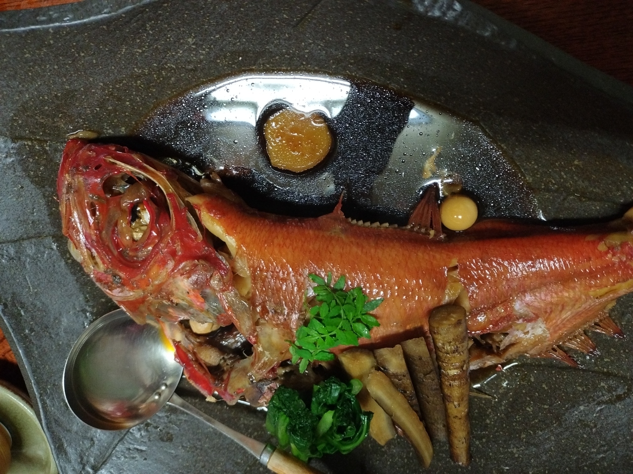 たぶんすっぽんを食べるのははじめてです。刺身も美味しかったけど、やはり金目鯛の煮付けですね。