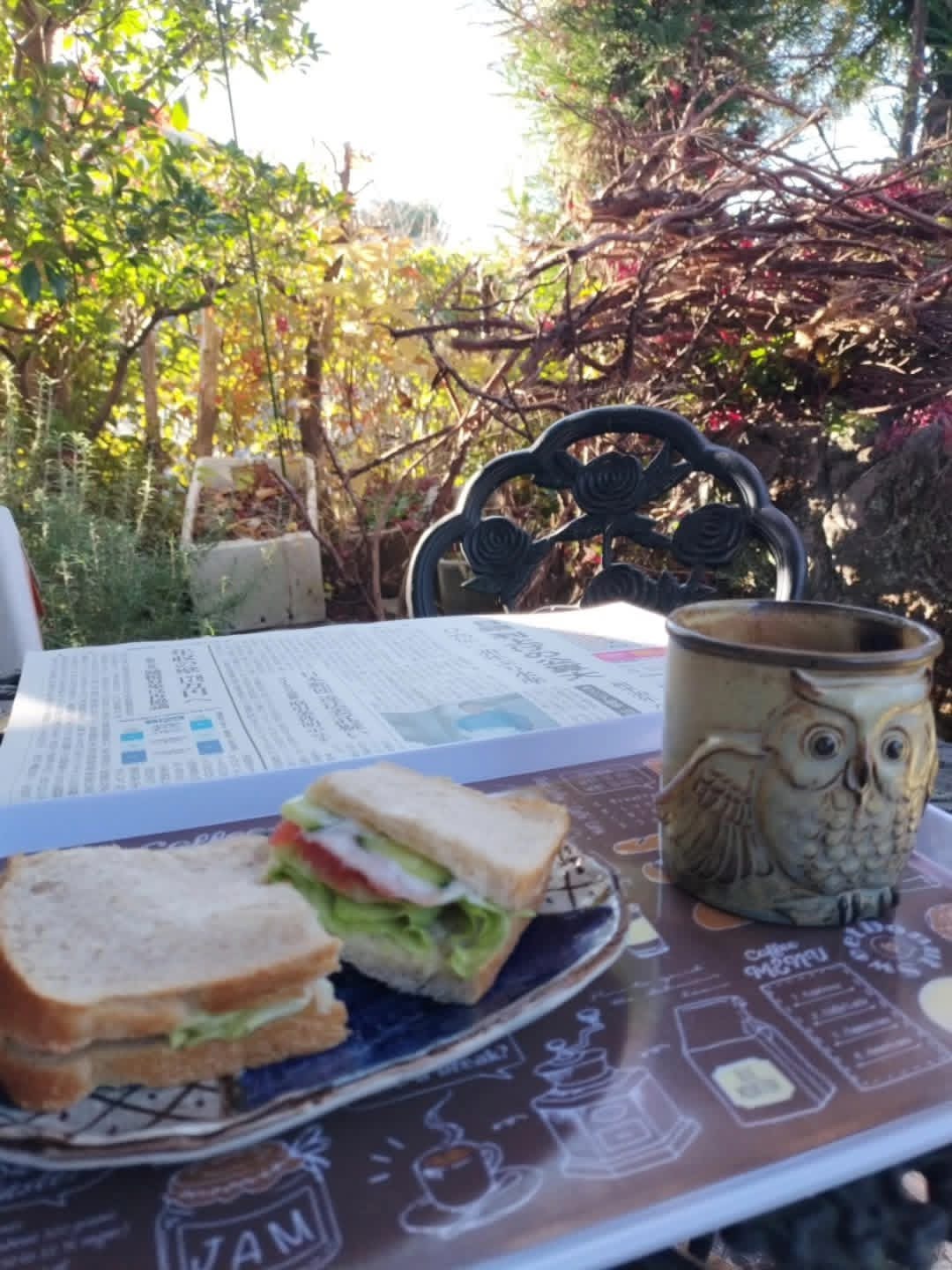 朝、起きたくありません。8時過ぎまでゴロゴロして、しかたになしに起きることに。コーヒーを淹れて猫の額へ。