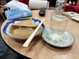 てことで、角打ちへ。中からCかちゃんが手を振ってくださいました。今日もレジェンド席です。はじめての常連さんと山の話をしながらの熱燗です。