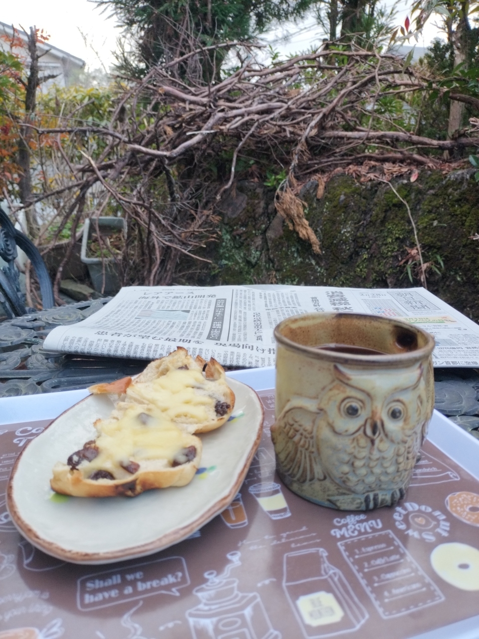 朝、起きたくないけど起きなきゃなりません。とりまコーヒーを淹れて、猫の額へ。